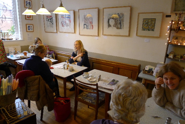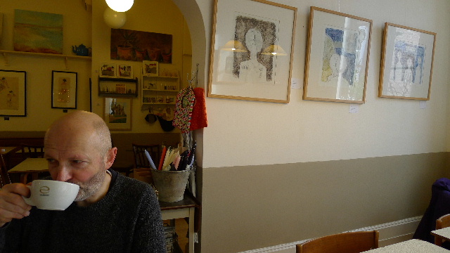 Showing mono-types and card design originals at our wonderful, friendly local Courtyard Café in St Albans… and they do great food too!